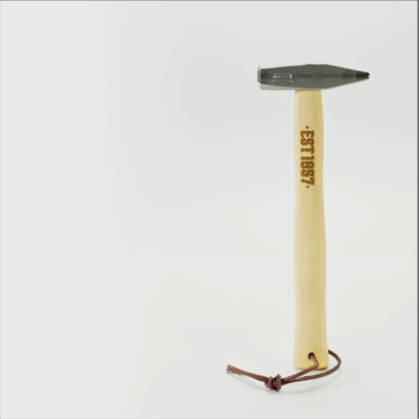 This creates the unmistakable silhouette of the hammer handle – designed with weight, balance and ergonomics in mind. The moisture content of the wood is continuously checked to prevent the hammer head from loosening later on. Each handle is individually marked by laser engraving – detailing model, weight and safety symbols.